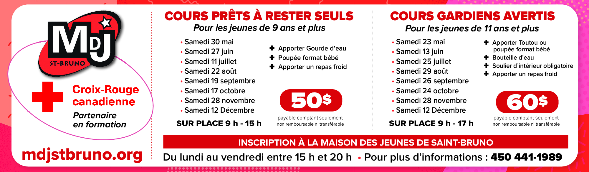 C.P. 61, succ. bureau chef, Saint-Bruno-de-Montarville (Québec) J3V 4P8| Jour | Période scolaire |